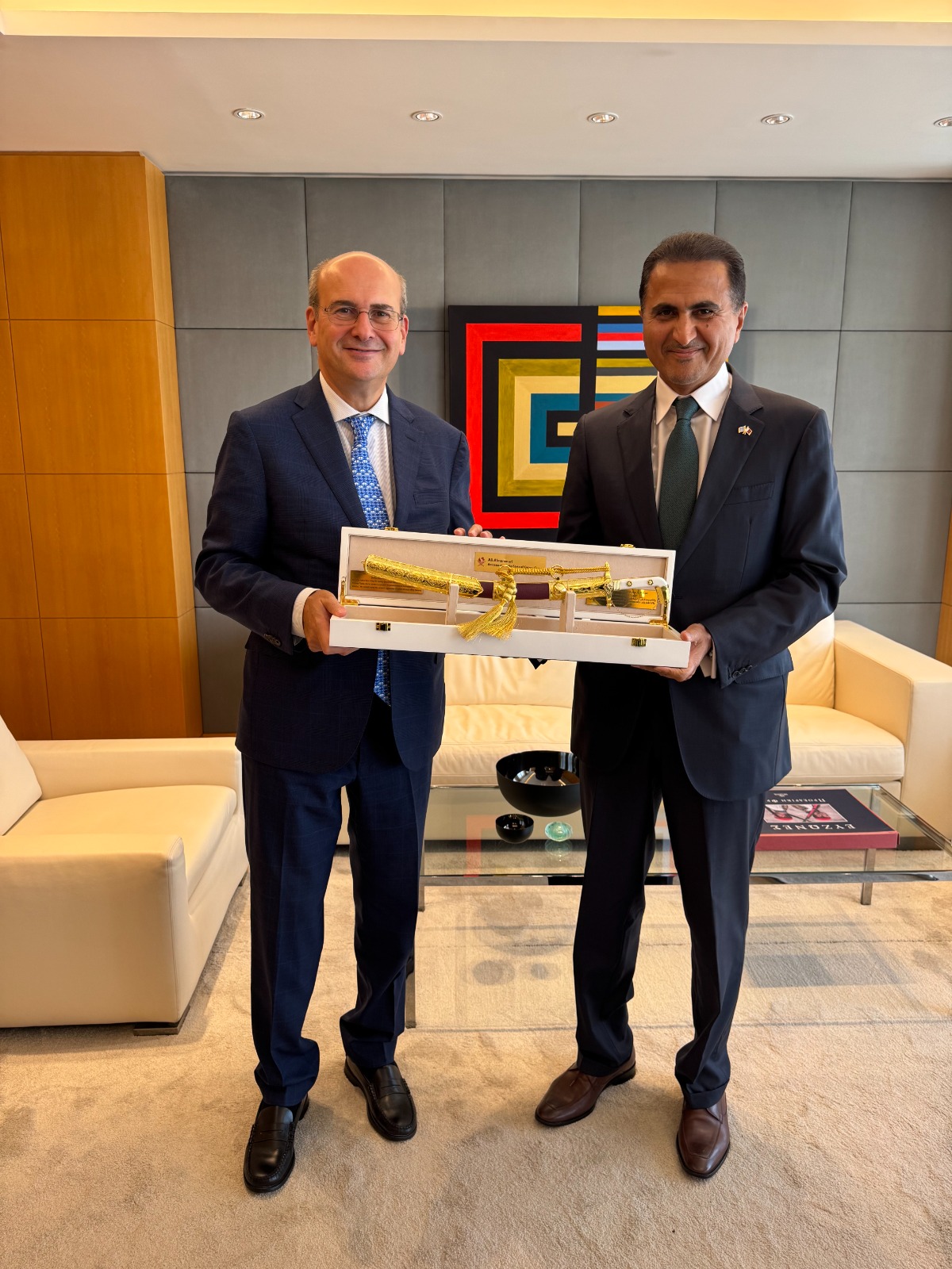 H.E. Mr. Ali Al Mansouri, Ambassador of the State of Qatar to the Hellenic Republic met with H.E. Mr. Kostis Hatzidakis, the Greek Deputy Prime Minister. The meeting dealt with reviewing bilateral cooperation and the means of enhancing them in all fields.